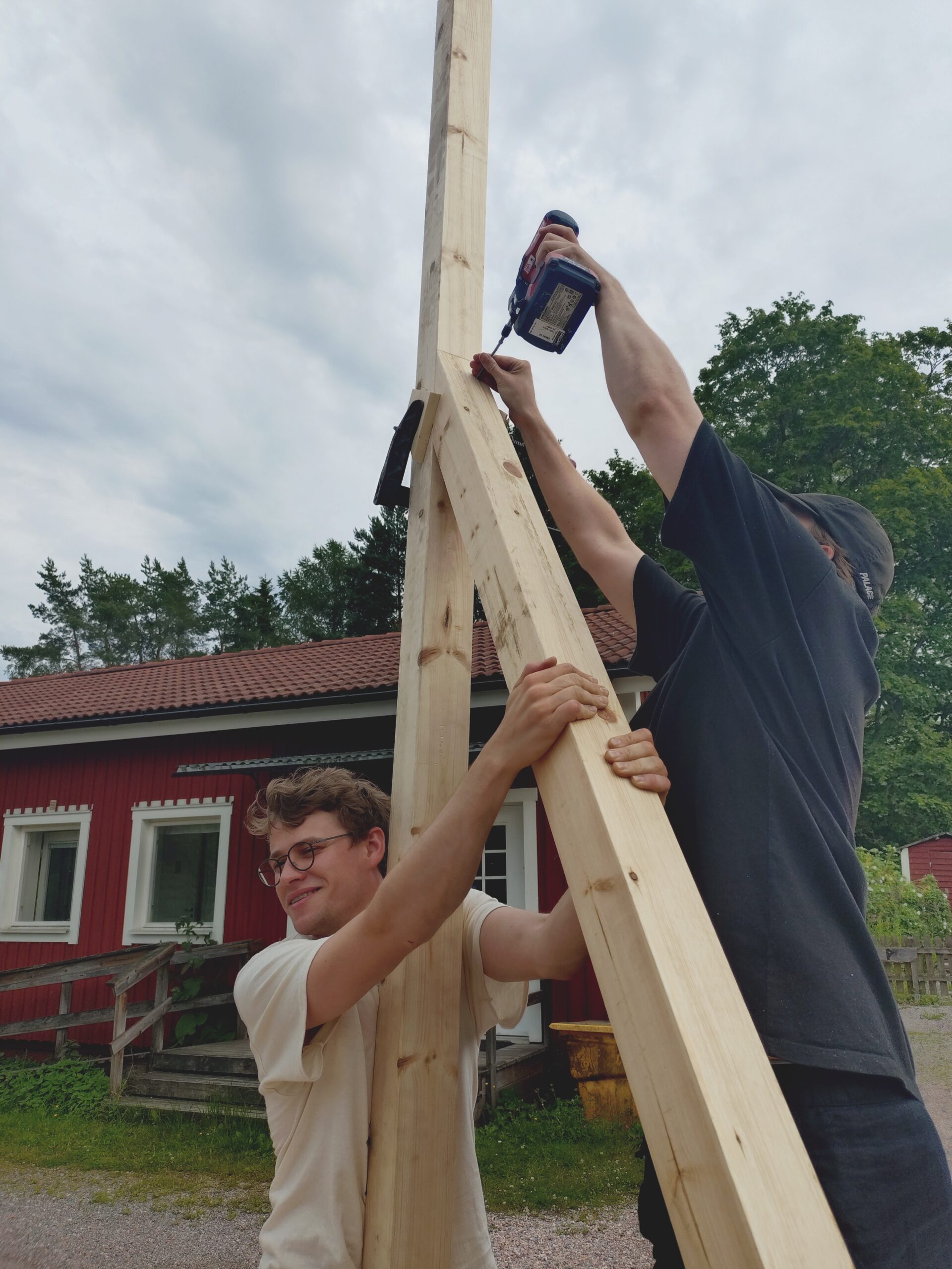 Some helped us with essential building material and tools like Cramo Nyköping, Strong-Tie with fastening, and local Sandåsa with the wood.